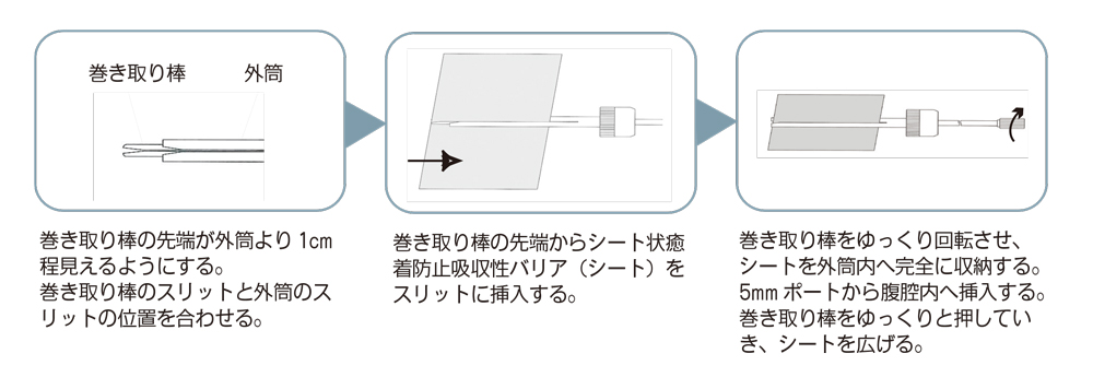 ⚫︎内視鏡下外科手術において、挿入が困難なシート状癒着防止吸収性バリアを